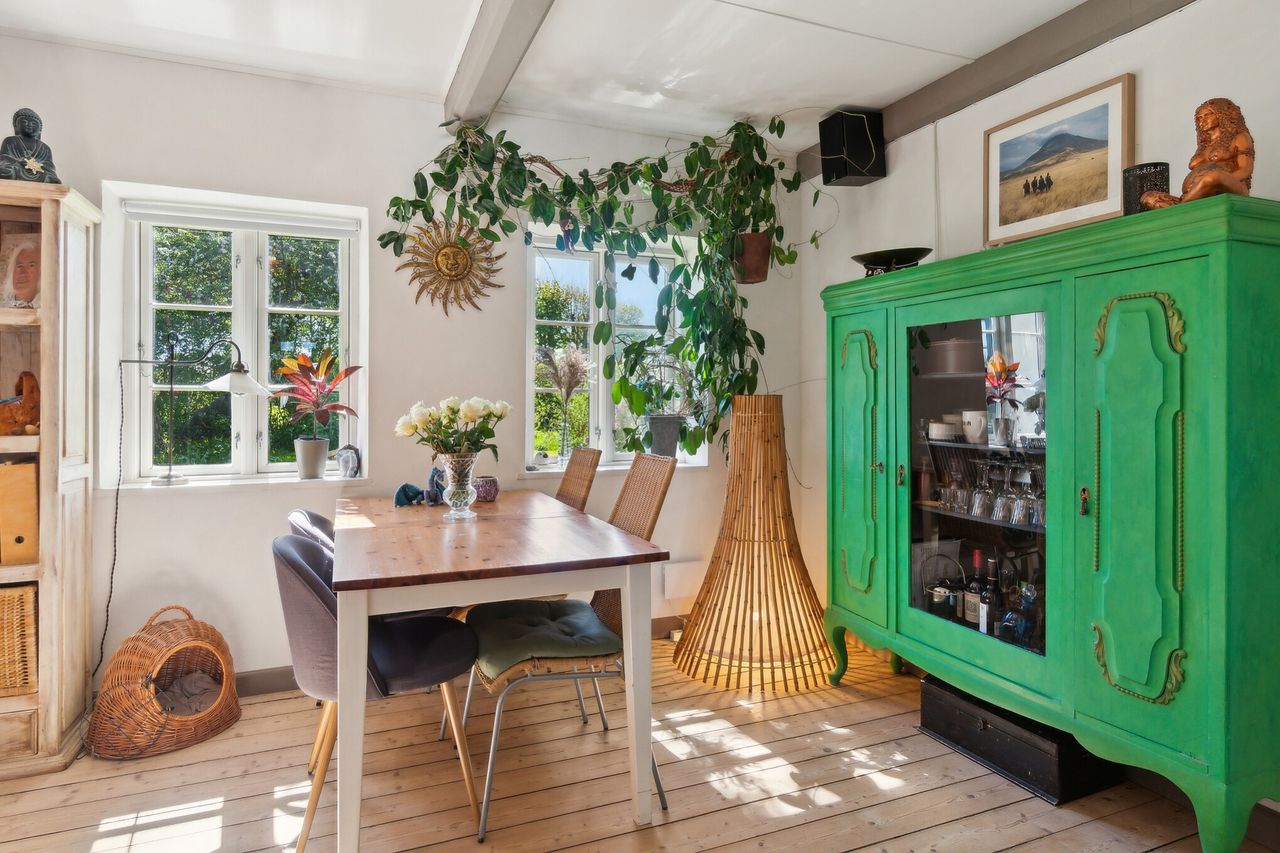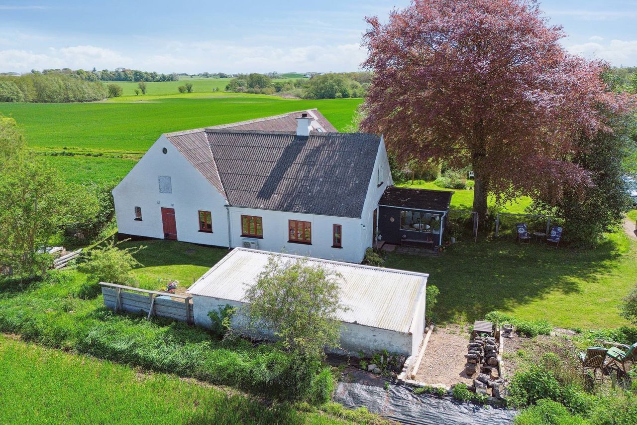 Det gamle husmandsted, der har sin helt egen sjæl og charme, består af to bygninger, der danner et L.
