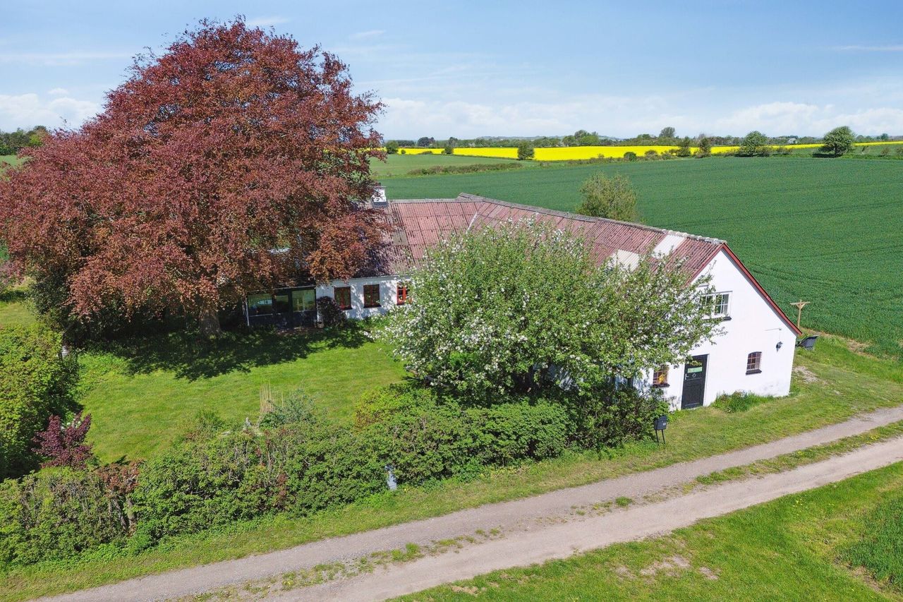 Beliggende i et idyllisk landområde, med udsigt ud til åbne marker og havet i Sejerøbugten i horisonten,