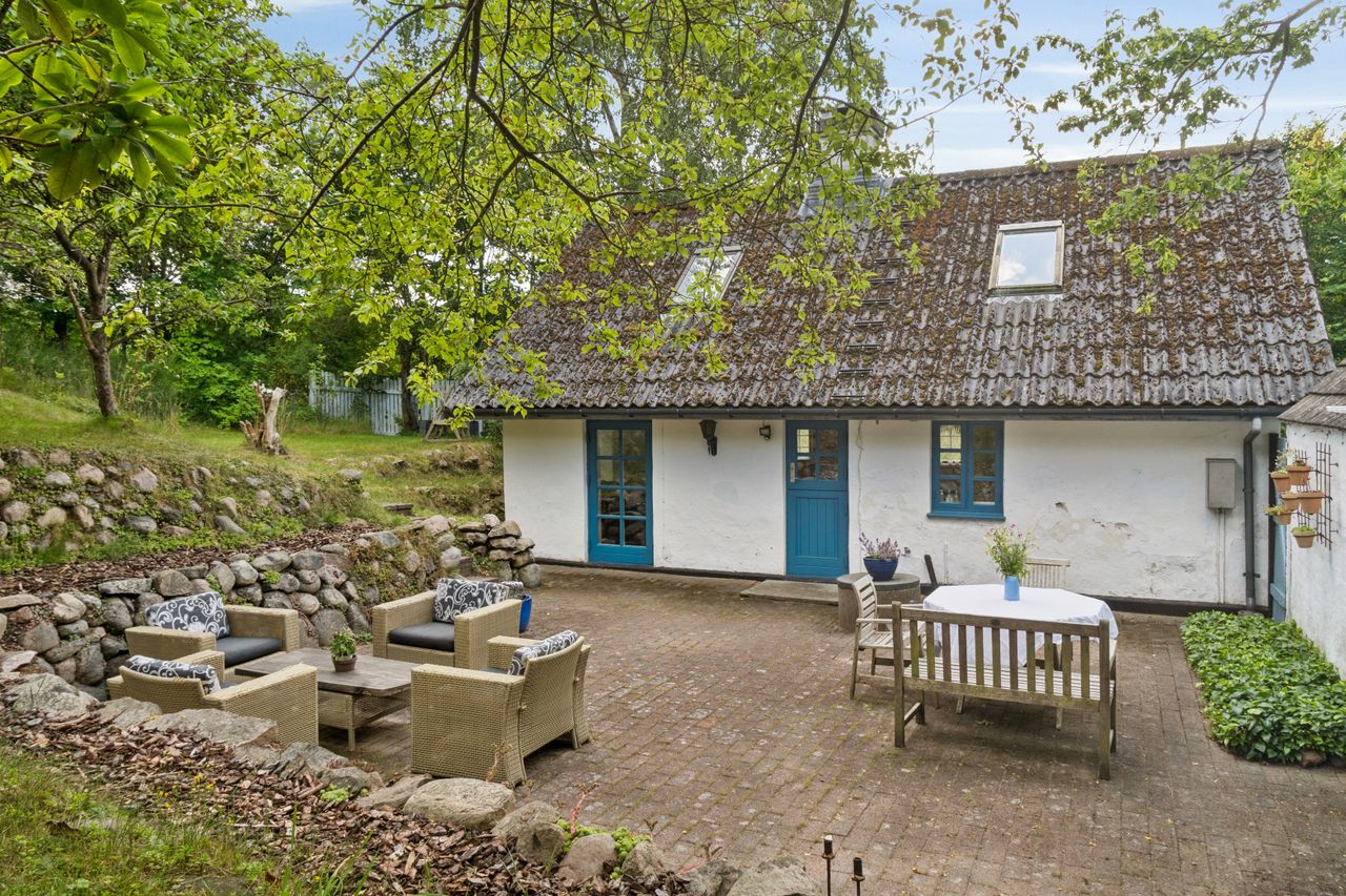 Her finder du ro og fordybelse omgivet af fuglesang fra morgen til aften, vildt dyreliv i haven og smuk, kuperet natur så langt øjet rækker. Flere små plateauer i haven giver mulighed for at skabe små åndehuller med udsigt og nærvær – perfekte til meditation, læsning eller bare ren afslapning.
